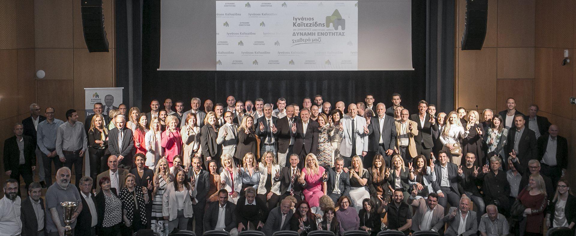 Με κεντρικό σύνθημα «η ομάδα που ξέρει να κερδίζει» ο Ιγνάτιος Καϊτεζίδης παρουσίασε τους πρώτους 156 υποψήφιους της «Δύναμης Ενότητας» , της δημοτικής ομάδας που διεκδικεί την ανανέωση της εμπιστοσύνης των δημοτών του Δήμου Πυλαίας-Χορτιάτη.