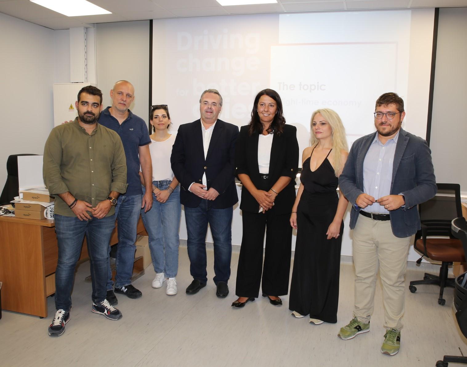 Στο πλαίσιο του έργου, πραγματοποιήθηκαν στις 12 Σεπτεμβρίου 2023, δύο κεντρικές συναντήσεις στο Δημαρχείο της πόλης, με στόχο την προώθηση ενός ανοιχτού και εποικοδομητικού διαλόγου και τη διερεύνηση διάφορων προκλήσεων που επηρεάζουν τη νυχτερινή οικονομία της πόλης μας.