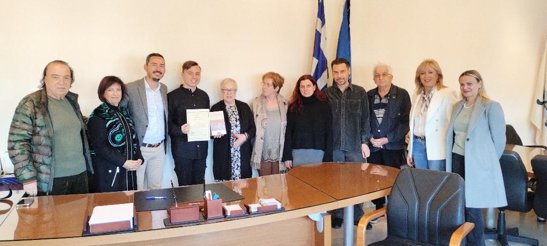Η Καλλιόπη Βγόντζα, σύζυγος του εκλιπόντος, συγκινημένη παρέδωσε στον αριστούχο το βιβλίο «… ανάμεσα στη μικρή και μεγάλη ιστορία…», του Αντώνη Ν. Βγόντζα, ένα πολύτιμο αυτοβιογραφικό πόνημα με σημαντικές αναφορές στην πόλη μας, τον Υμηττό, όπου γεννήθηκε.