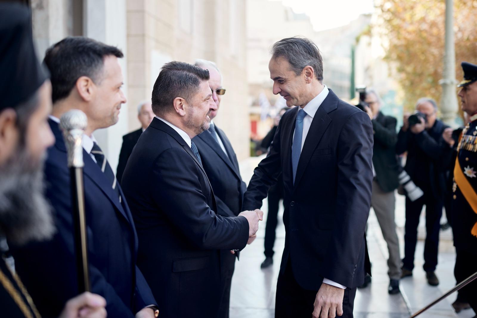 Αμέσως μετά το πέρας της Δοξολογίας, ο Περιφερειάρχης μετέβη στο Προεδρικό Μέγαρο για τη διατύπωση των καθιερωμένων πρωτοχρονιάτικων ευχών στην Πρόεδρο της Δημοκρατίας Κατερίνα Σακελλαροπούλου.