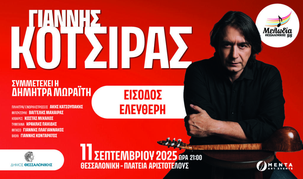 Ο Μελωδία Θεσσαλονίκης 98 προσκαλεί τον Γιάννη Κότσιρα, για μια μοναδική συναυλία στην πλατεία Αριστοτέλους Θεσσαλονίκης, την Πέμπτη 11 Σεπτεμβρίου