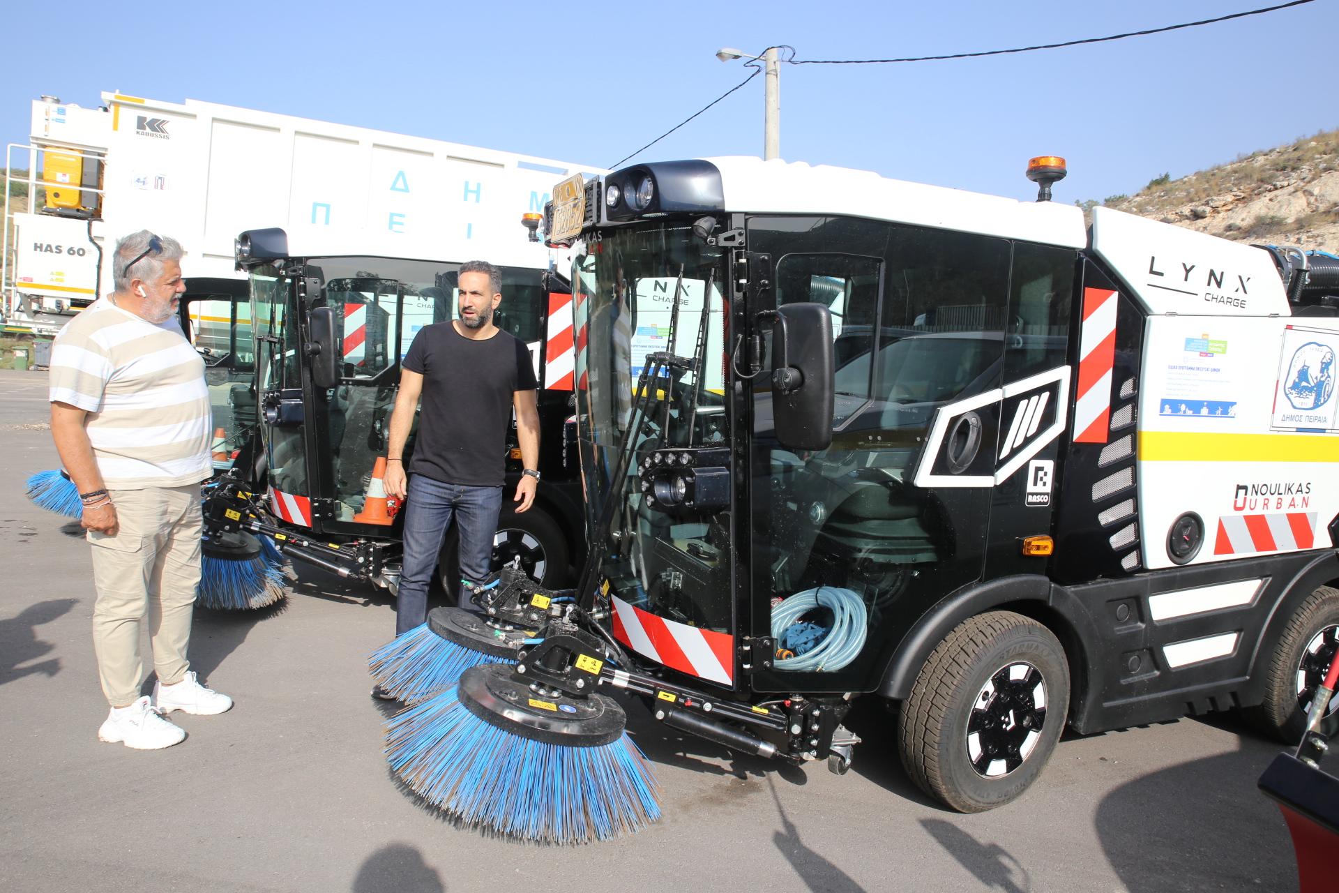 «Συνεχίζεται η αναβάθμιση του στόλου μας με δέκα νέα οχήματα, τα τελευταία οχήματα που παραλαμβάνουμε γι΄ αυτήν την χρονιά. Πρόκειται για πέντε ημιφορτηγά πολλαπλών χρήσεων, εκ των οποίων τα τρία έχουν εκχιονιστική λεπίδα, προκειμένου να αντιμετωπίσουμε πιθανές χιονοπτώσεις, τρία ηλεκτροκίνητα σάρωθρα και δύο απορριμματοκιβώτια μεταφόρτωσης απορριμμάτων. Επενδύουμε στον στόλο μας, αλλά και στο έμψυχο δυναμικό, γιατί όταν έχουν καινούργια μηχανήματα και καινούργιο στόλο, εργάζονται με περισσότερη αποδοτικότητα και ασφάλεια»
